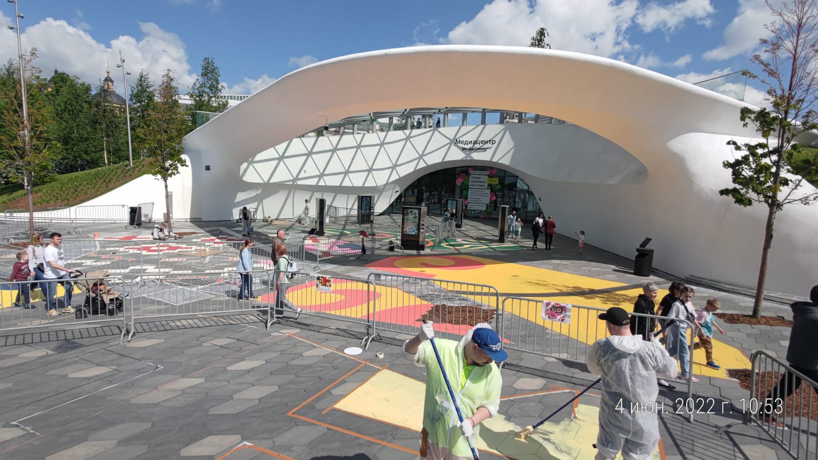 От ГАУК г. Москвы «Парк «Зарядье» поступил весьма непростой запрос на краски для создания временного уличного рисунка по гранитным плитам.
