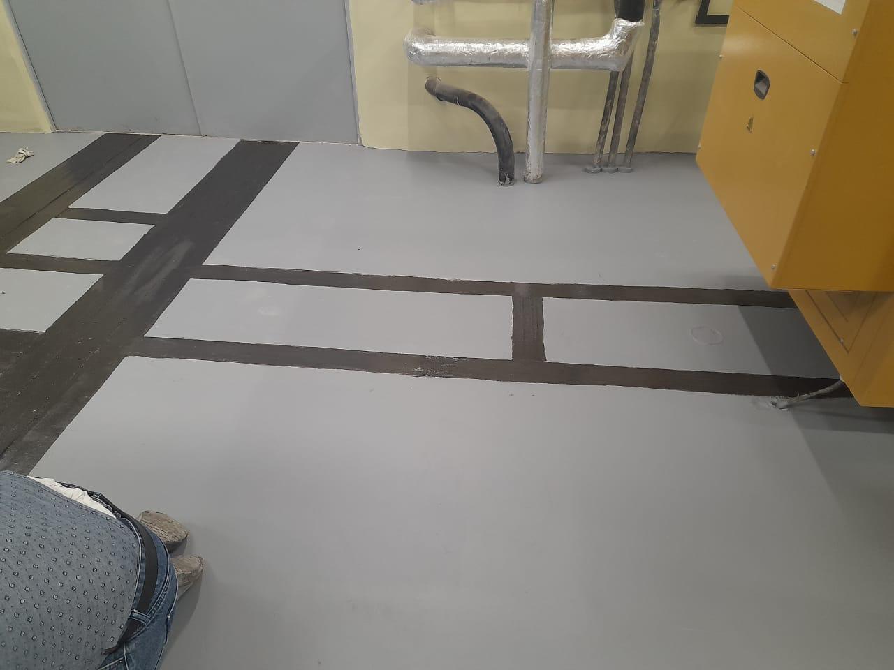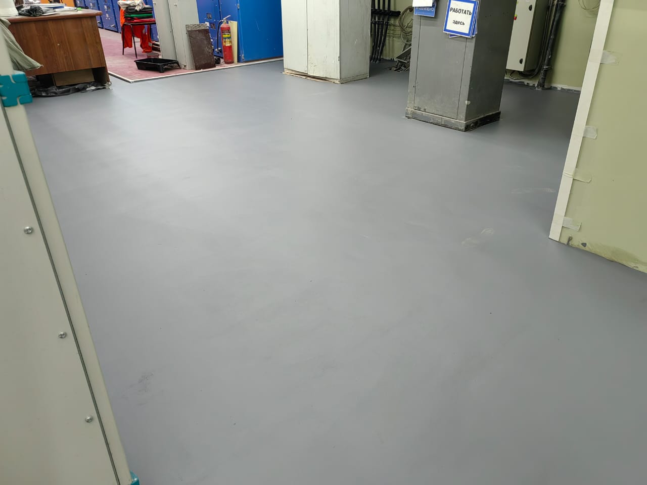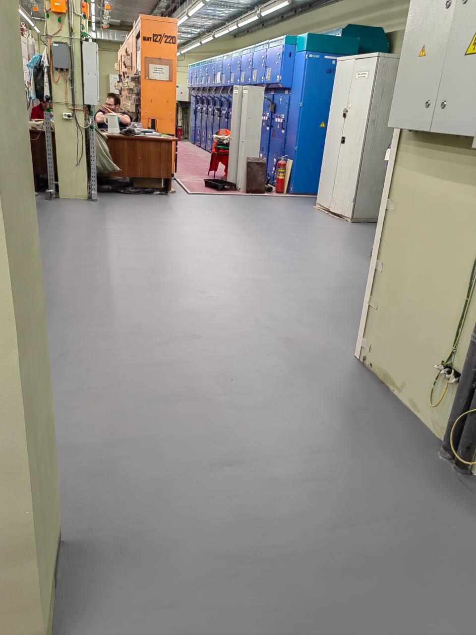Требования заказчика были следующие: краска должна высыхать для пешей нагрузки не более чем за 30 минут т.к. долгая остановка рабочих процессов на объекте не возможна. Краска должна быть абсолютно без запаха т.к.использование спец средств защиты для всхе сотрудников и рабочих не предусматривается.