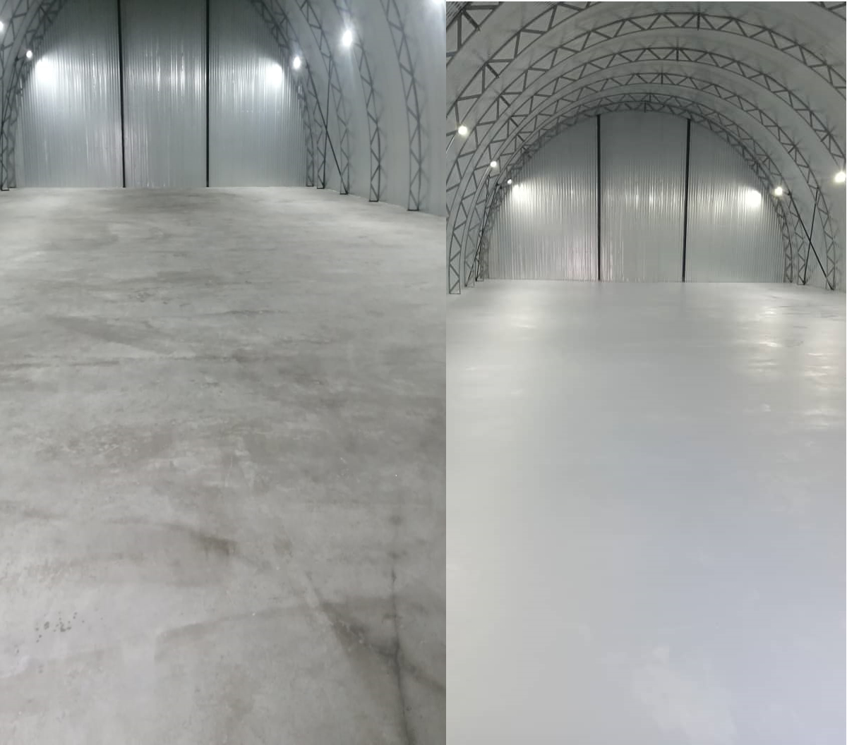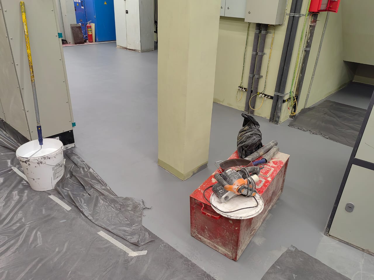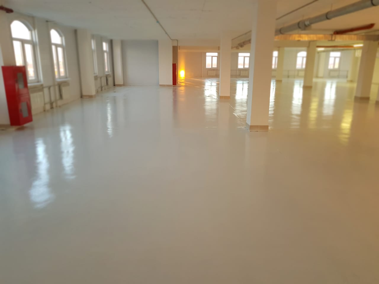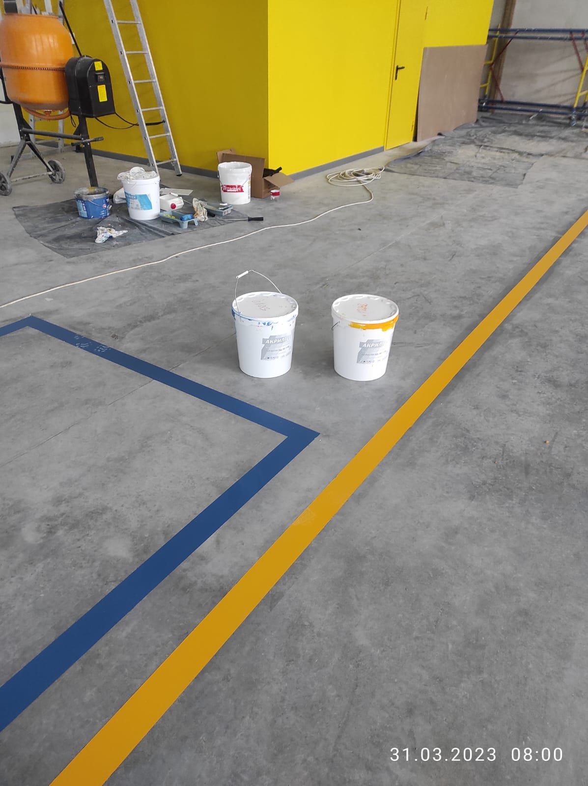 Требования заказчика были следующие: краска должна высыхать для пешей нагрузки не более чем за 30 минут т.к. долгая остановка рабочих процессов на объекте не возможна. Краска должна быть абсолютно без запаха т.к.использование спец средств защиты для всхе сотрудников и рабочих не предусматривается.