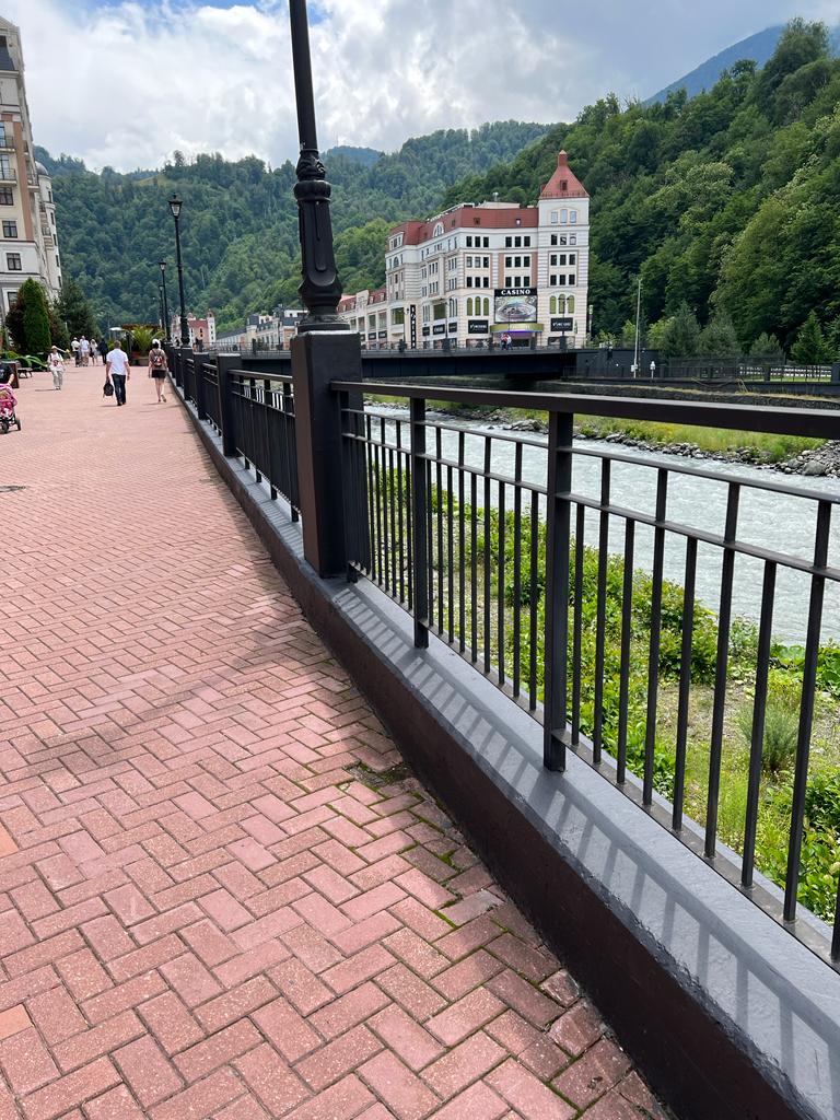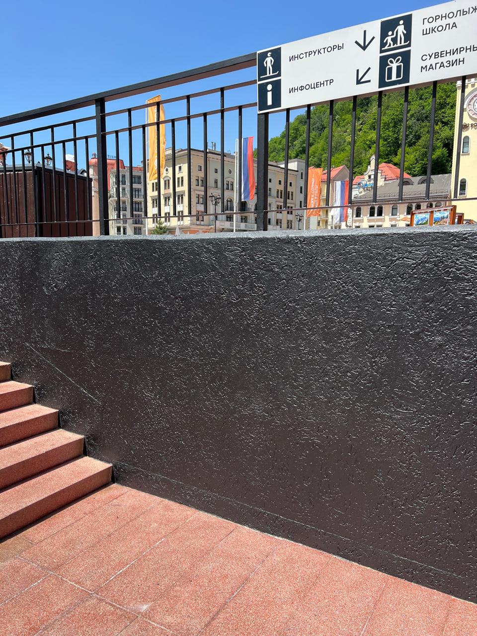 На данный момент прошло уже 3 года и краска не потеряла свой насыщенный черный цвет, не шелушится а конструкции и набережная радуют гостей горнолыжных курортов своим опрятным внешним видом.