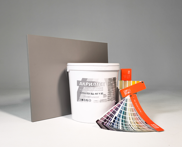 Краска АКРИЛТЕК АК-ВД У 80 - это инновационный продукт. Повле нанесения превращается в эластичную плёнку с большим коэффициентом растяжения. Внешне напоминает резиновую поверхность. Обладает высокой водостойкостью. Может применяться в качестве фасадных материалов. Долгое время не теряет эластичность за счёт использования специальных акрилатных латексов.